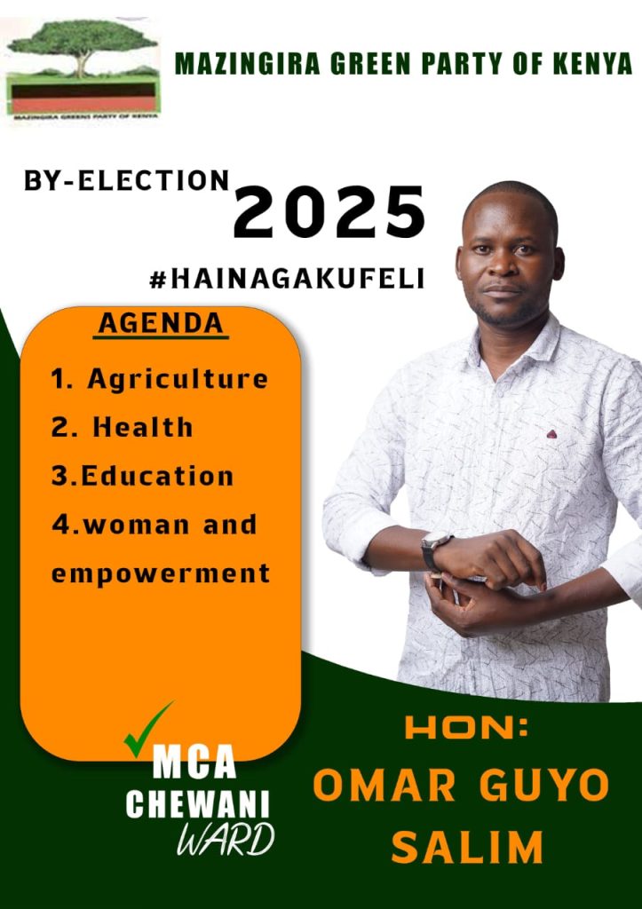 Omar Guyo Salim Cleared to Contest for Chewani County Assembly Seat Omar Guyo Salim Cleared to Contest for Chewani County Assembly Seat on a Mazingira Greens Party ticket. WhatsApp Image 2025-10-08 at 12.13.18_b1c2aed2 WhatsApp Image 2025-10-08 at 12.13.16_0e396e01 WhatsApp Image 2025-10-08 at 12.13.16_64ff9392 WhatsApp Image 2025-10-08 at 12.13.17_73571c4a WhatsApp Image 2025-10-08 at 12.13.17_d78db583